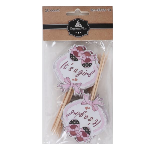 18 Pink Round "Its a Girl" Toothpicks for Cake Decarotion