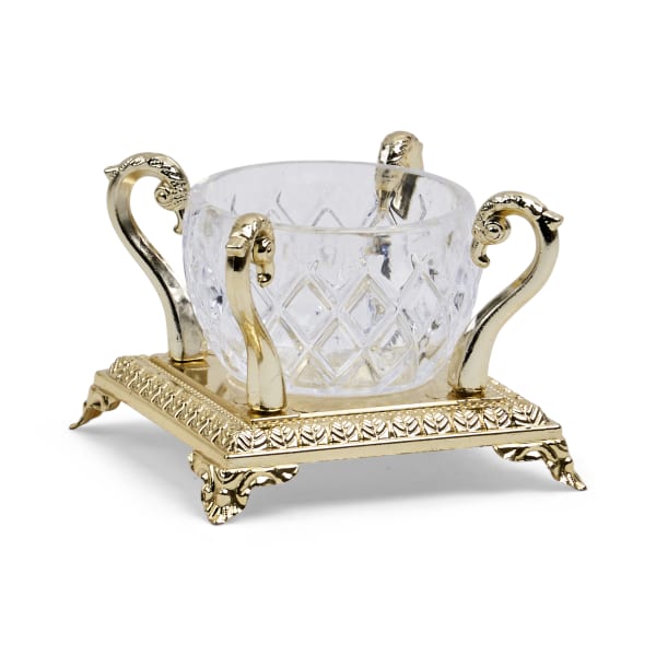 Crystal Salt Holder with Coaster Pearl & Gold Metal