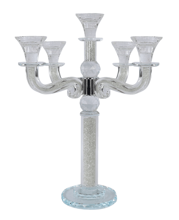 "Classic Style" 5 branch Clear Filling Crystal Candelabra 15.5"H